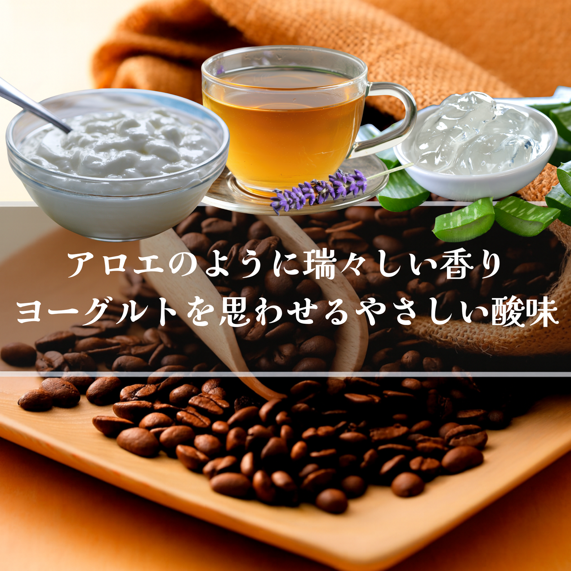 | 風味 | アロエのように瑞々しい香り、ヨーグルトを思わせるやさしい酸味、ハーブティーのような爽快さ、そして…もう言葉では表せない、不思議で心に残る一杯 |