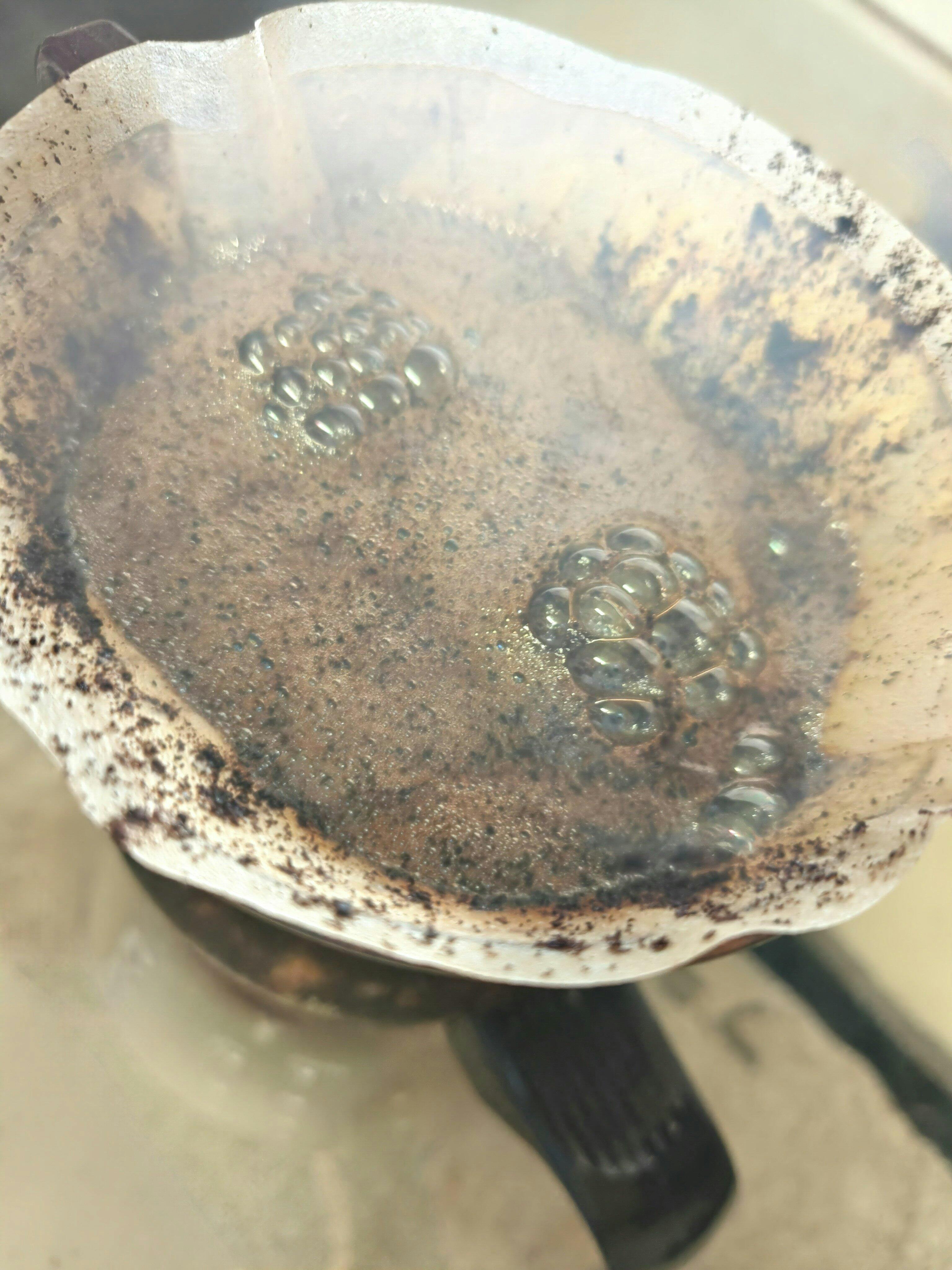 - 抽出:膨らみが落ち着いたら再び「の」の字でゆっくり注ぎ、合計2分半ほど。